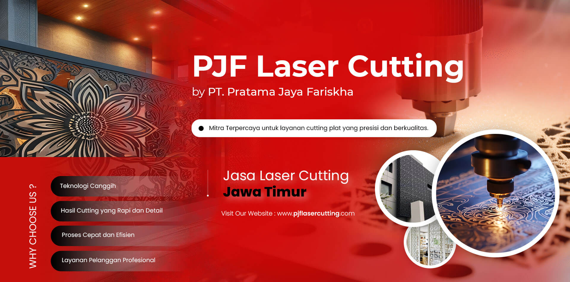 Selamat datang di PT. Pratama Jaya Fariskha, penyedia jasa laser cutting terpercaya yang berlokasi di Jombang, Jawa Timur. Sebagai perusahaan yang bergerak di bidang pemotongan laser berteknologi tinggi, kami hadir dengan merek PJF Laser Cutting untuk memenuhi kebutuhan industri, konstruksi, dan dekorasi di berbagai wilayah, khususnya di Jawa Timur dan sekitarnya.
